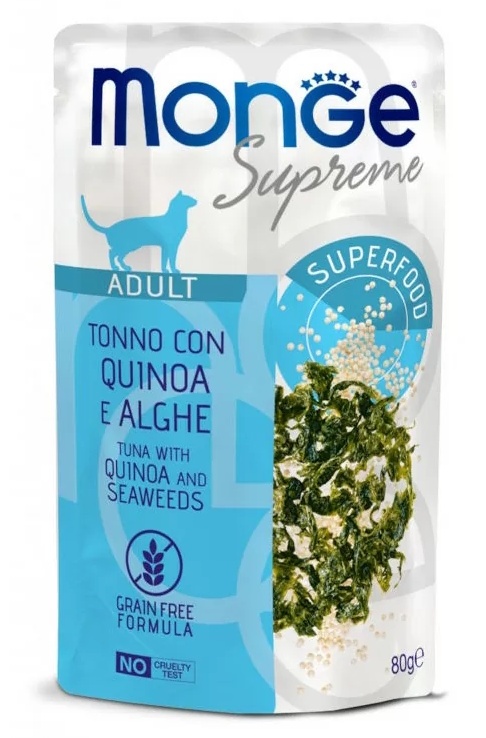Hrană umedă pentru pisici Monge Supreme Adult Tuna/Quinoa/Seaweeds 80g