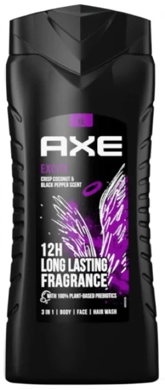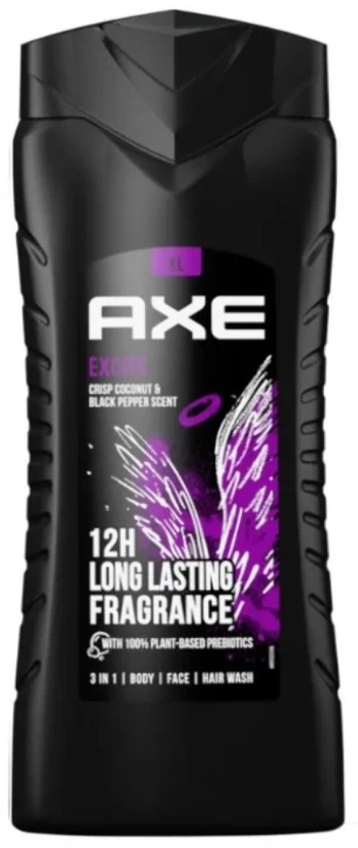 Gelul de duș AXE EXCITE te cucerește cu un parfum oriental lemnos, îmbogățit cu note de caramel, bezea și cocos, completate de accente dulci de alun și pastă de Nutella.