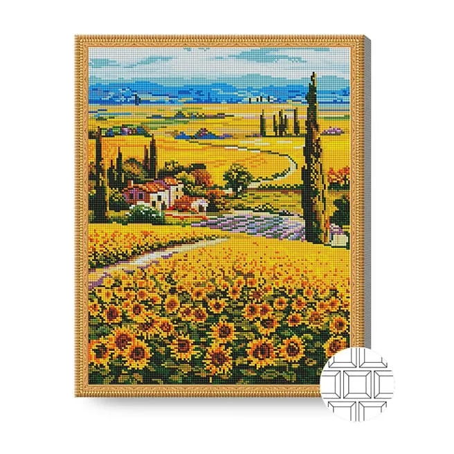 Pictura cu diamante după numere Art Gallery Premium A Road Through A Field Of Sunflowers 40x50cm (QB200727)