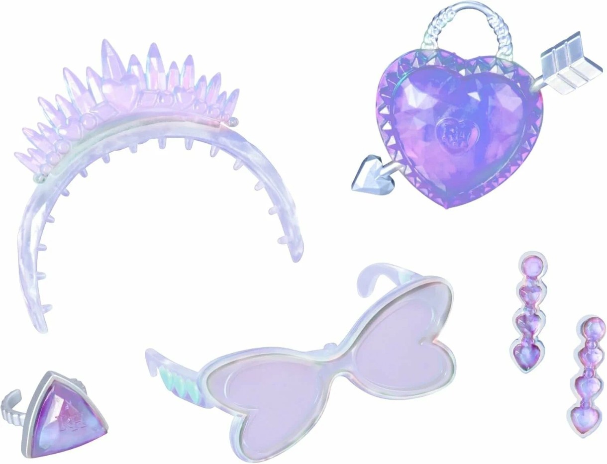 KIT DE CONFECȚIONARE ACCESORII DIN CRISTAL: Păpușa ta Rainbow High Creative Crystals vine cu tot ce ai nevoie pentru a crea 5 accesorii la modă pentru păpușa ta și pentru tine – inclusiv rășină, matrițe și unelte pentru realizarea accesoriilor.