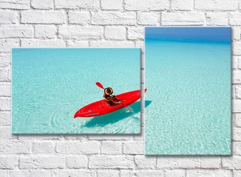 Pictură ArtPoster Girl on a Red kayak in the sea (3453836)