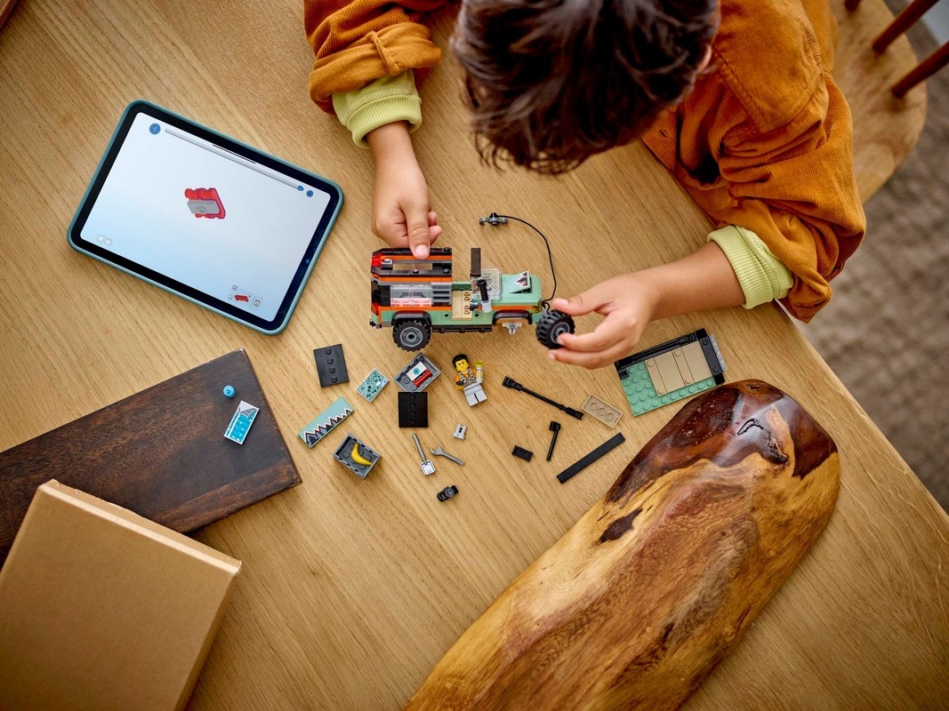 Acest set de joacă off-road include un ghid de construcție tipărit și instrucțiuni digitale în aplicația LEGO Builder. Aici, copiii pot mări și roti modelele în 3D, pot salva seturi și își pot urmări progresul.