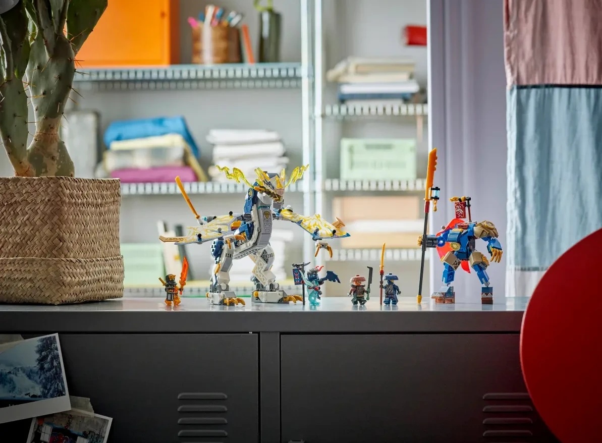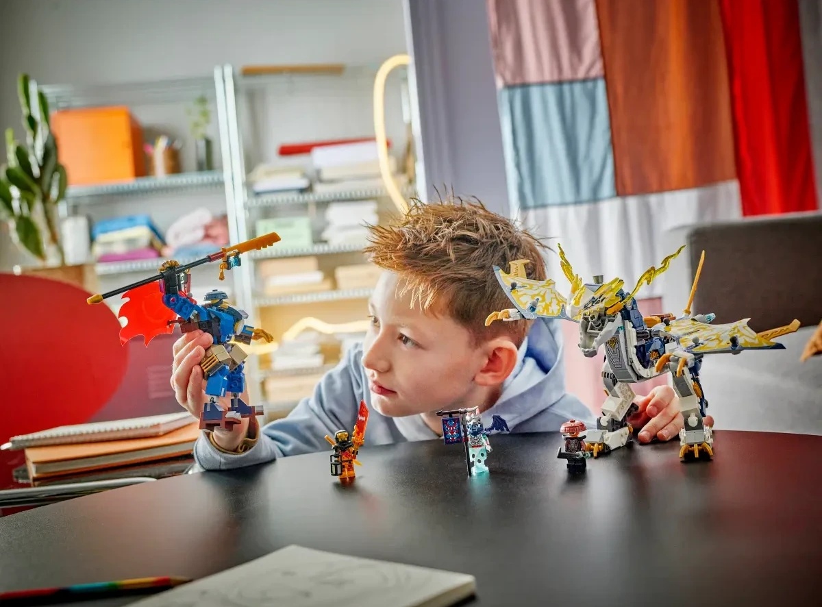 Jucăria combinată ninja Rogue's Mech Dragon Rider (71843) permite băieților și fetelor cu vârsta de 8 ani și peste să joace roluri în povești din sezonul 3 al serialului TV NINJAGO® Dragons Rising. Copiii se pot juca separat cu robotul și cu primul robot dragon NINJAGO din lume, apoi le pot combina pentru a crea minunatul Rogue Mech Dragon Rider.
