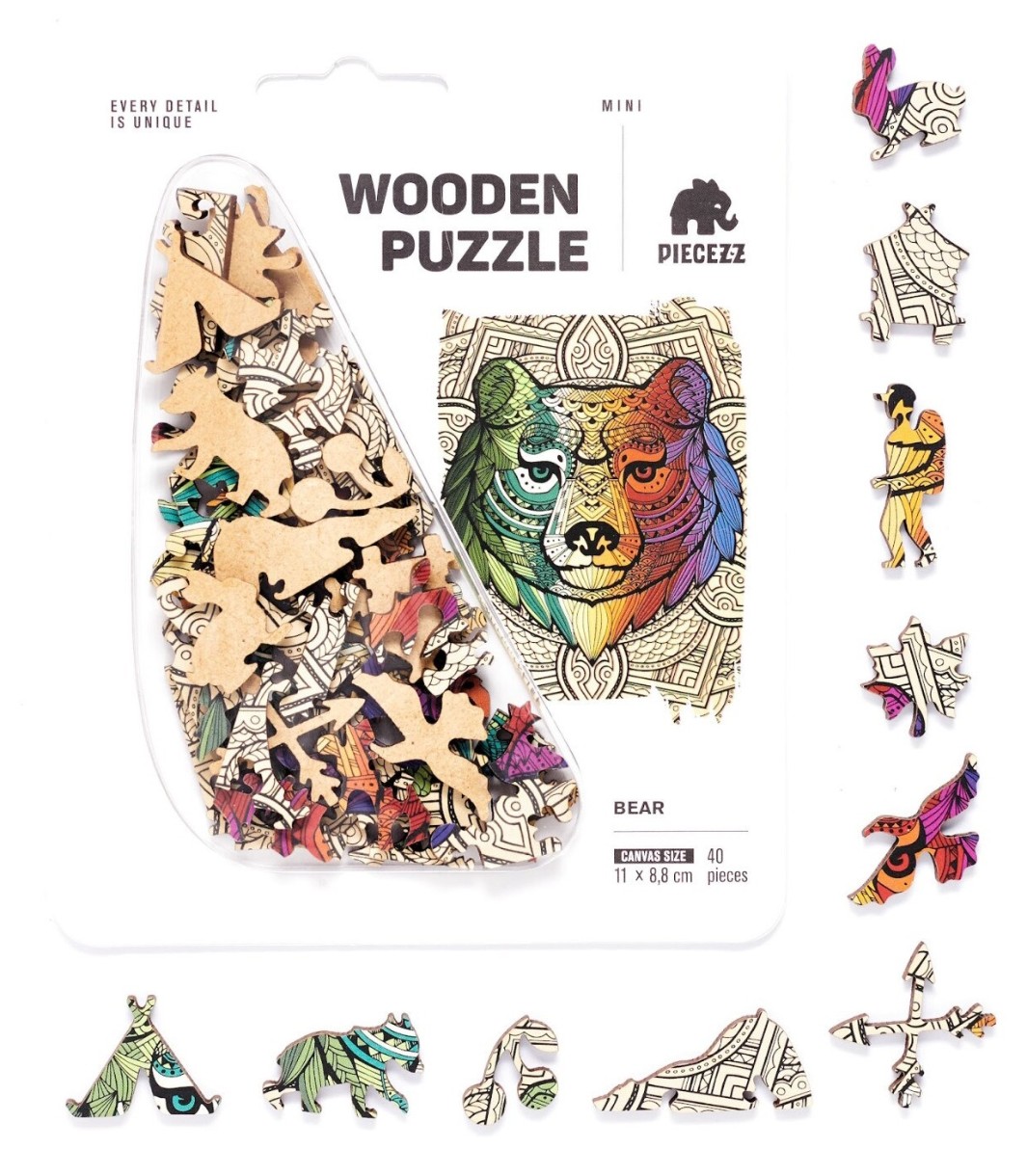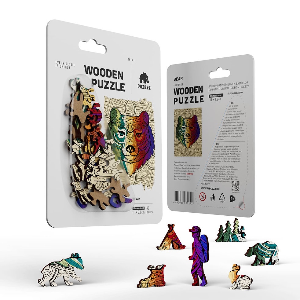Cu toate acestea, cu un set mare de puzzle-uri Piecezz, nu vei putea hiberna. Dimpotriva! Foloseste-ti inteligenta la 200% pentru a asambla un puzzle al animalului tau preferat din figuri luminoase, rotunjite, cu miros unic de lemn natural. Lasa-te cufundat in atmosfera de basm a acestor puzzle-uri colorate.