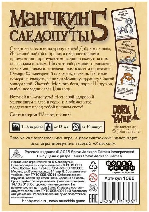 Specificații Joc educativ de masa Hobby World Манчкин 5 Следопуты (1328)