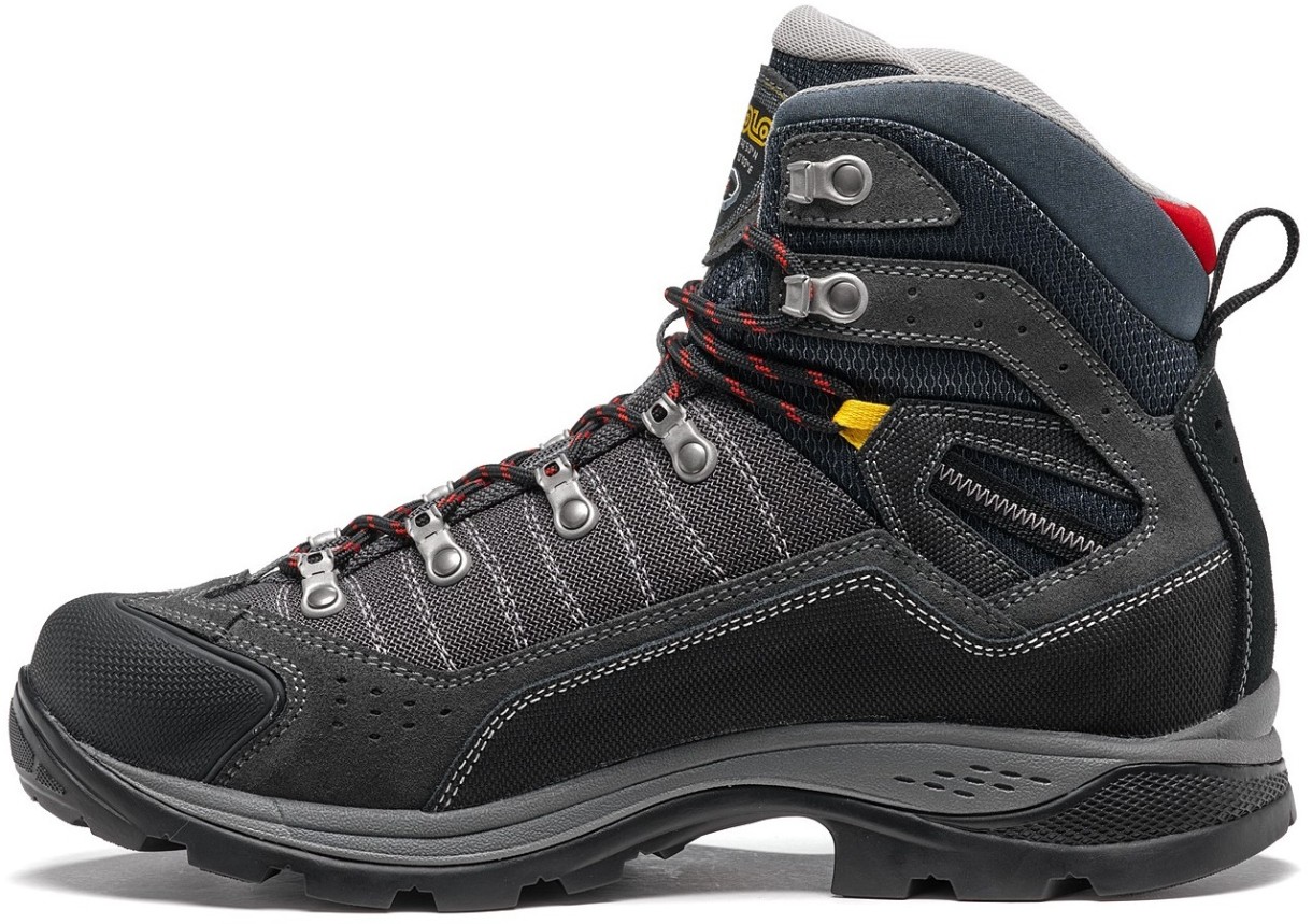 Talpa exterioară este realizată din două densități de talpă intermediară Eva: prima densitate este mai fermă pentru a oferi suport și stabilitate, în timp ce a doua este mai moale pentru a oferi confort și amortizare. Talpa exterioară Asolo/Vibram are un design cu autocurățare și folosește un compus MegaGrip care oferă tracțiune, tracțiune și performanță superioare pe teren umed și uscat. Modelul este completat de o suprapunere de cauciuc pe vârf pentru o protecție suplimentară în față și de un sistem de șireturi hardware pentru dantelă rapidă și precisă.