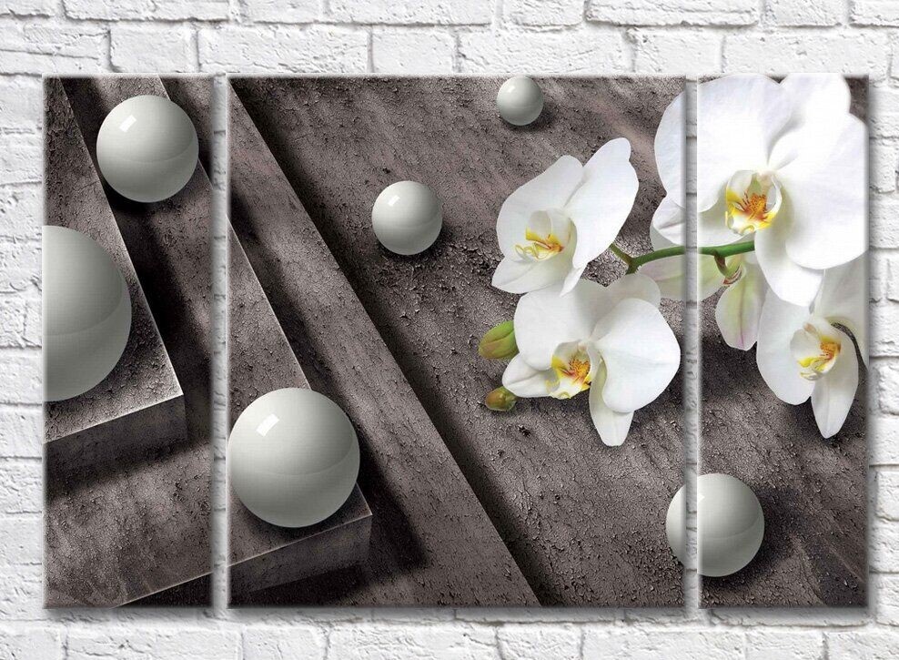 Pictură ArtPoster White orchid and Gray spheres on a Dark background (3565133)