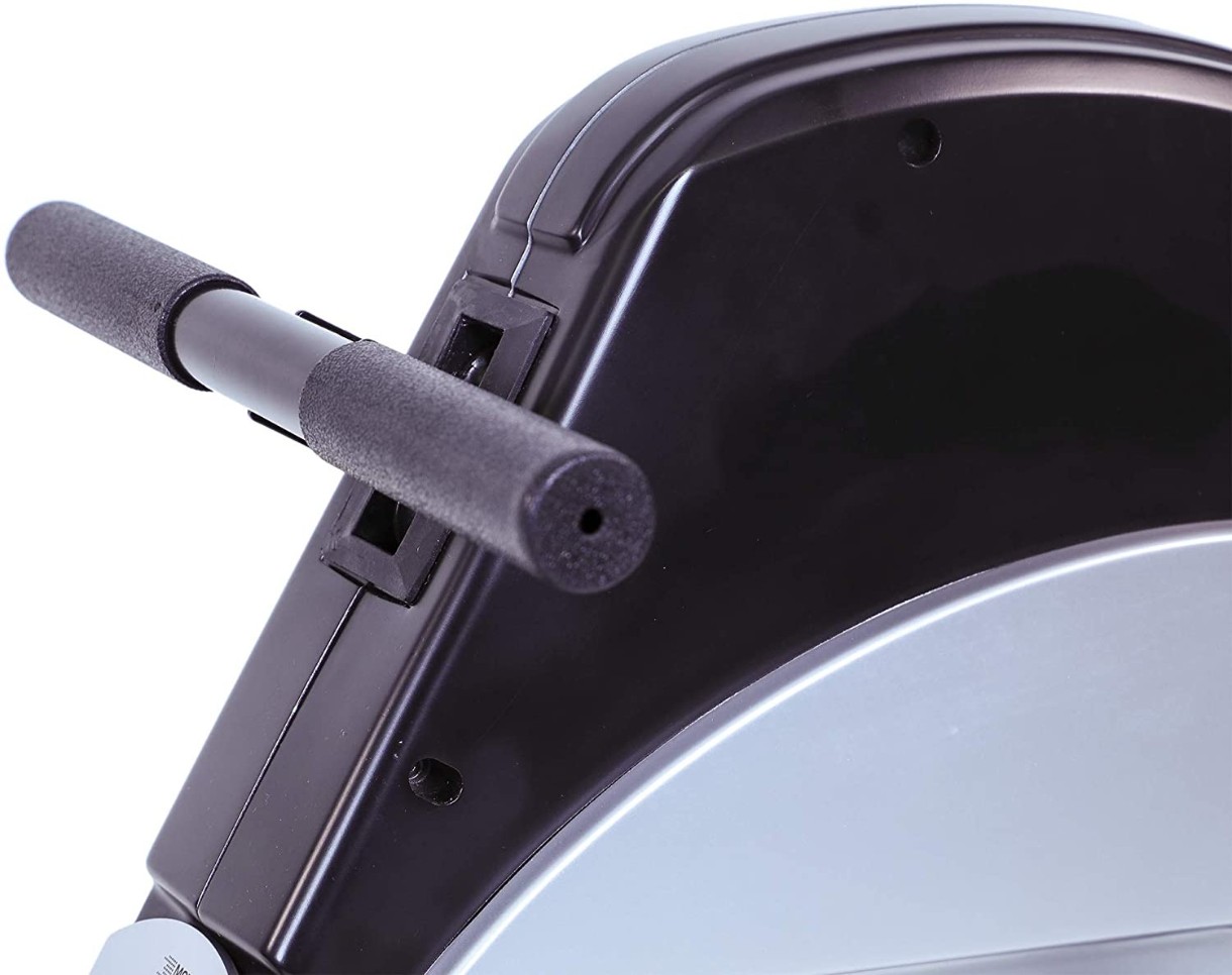 Cablul reglabil manual vă permite să alegeți între 4 rezistențe de sarcină. Ecranul LCD este ușor de operat cu un buton. Acest lucru vă permite să comutați afișajul între durată, distanță, curse și calorii arse.