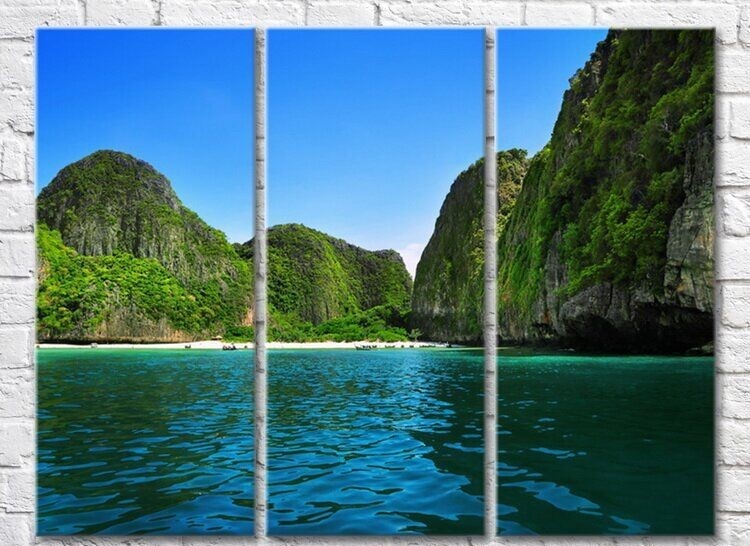 Pictură Rainbow Green cliffs and sea (3469135)