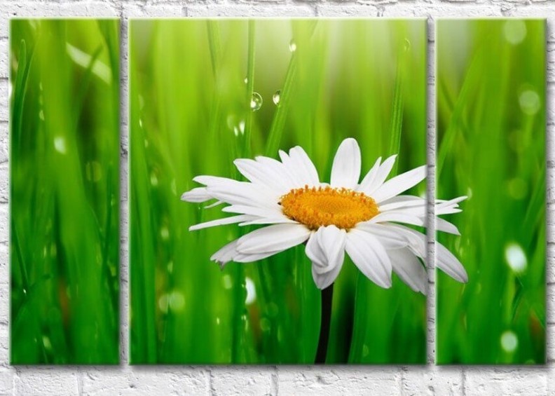 Pictură Gallerix Chamomile on a background of blades of grass with dew (500613)