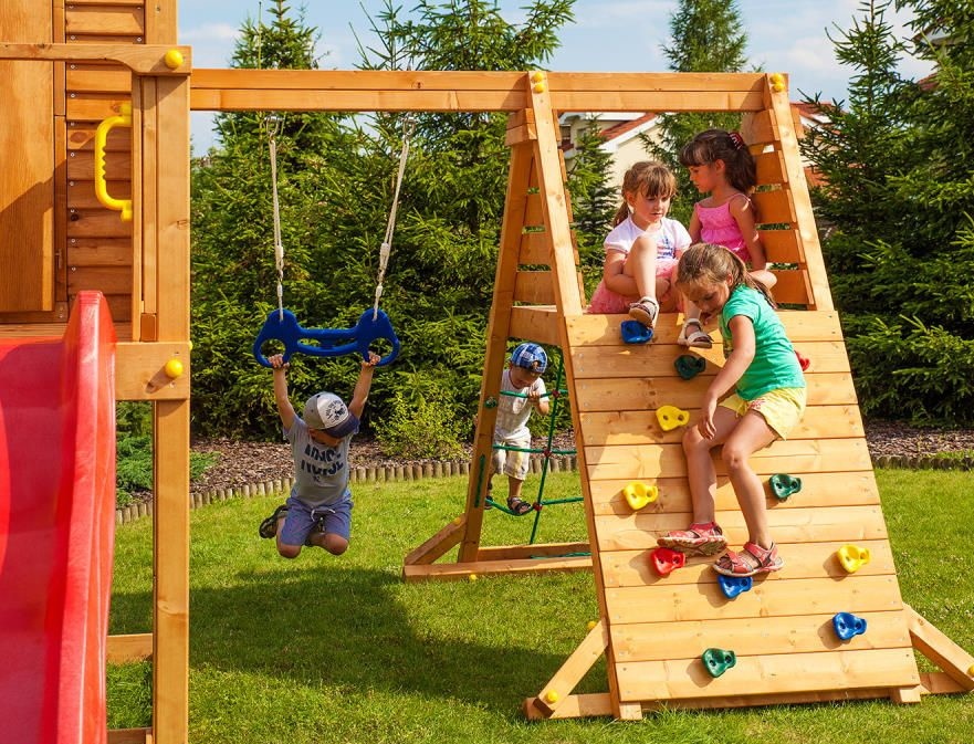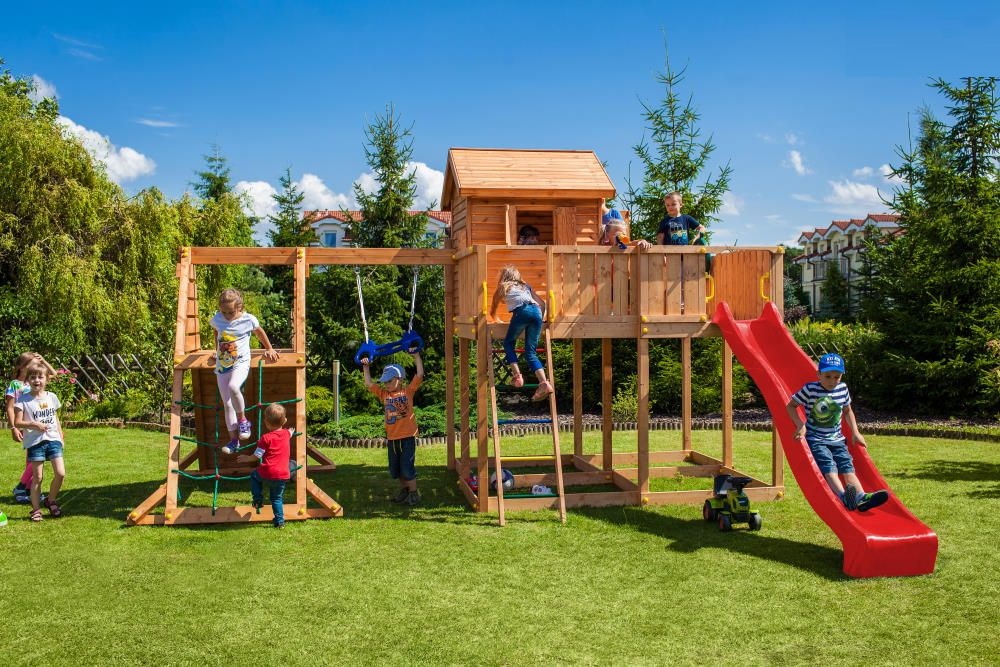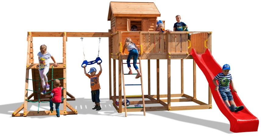 In settobogan, leagăne, scara, perete de alpinism, casa