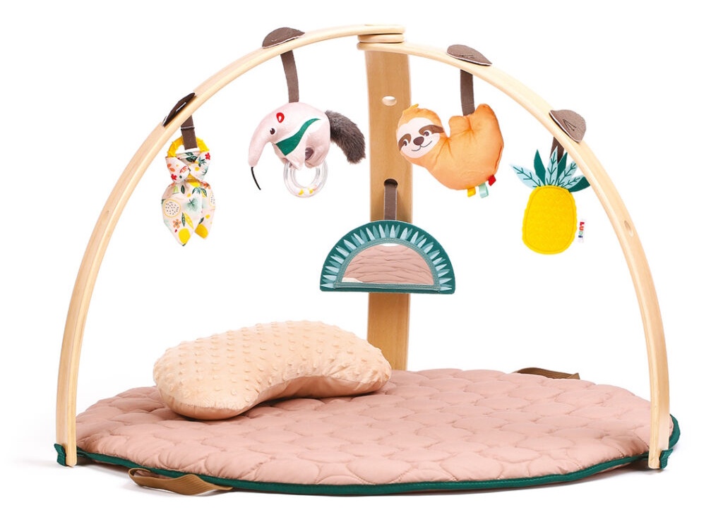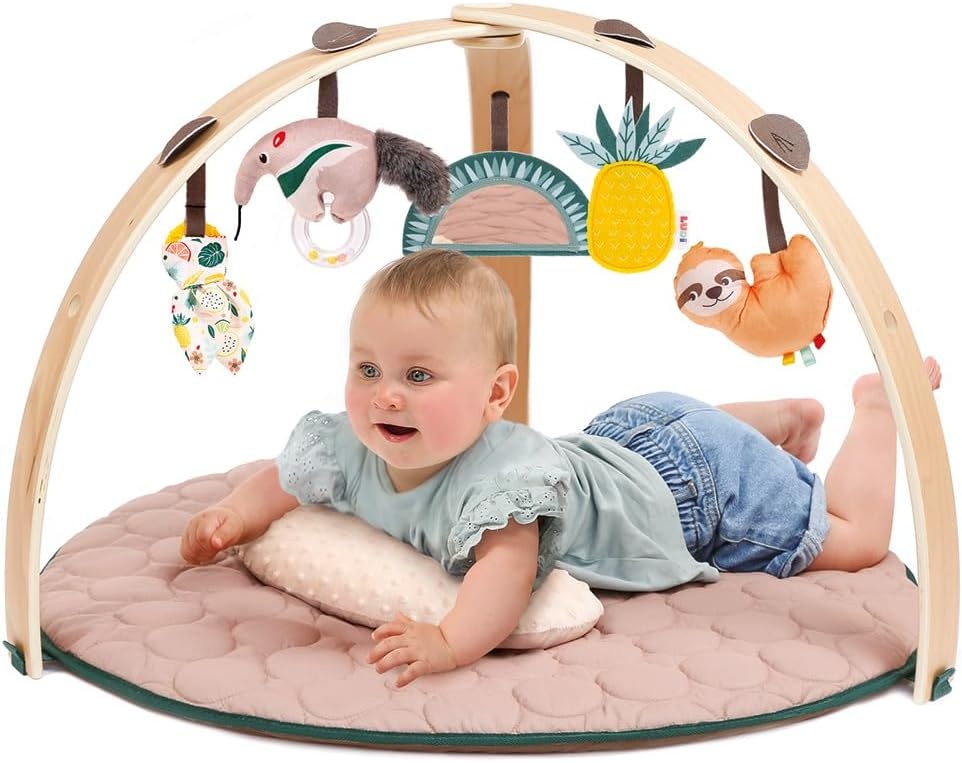 Oferă-i micuțului tău un spațiu de joacă moale și stimulant cu acest covoraș de joacă elegant conceput. Arcadele sale din lemn și activitățile senzoriale modulare îl transformă într-un adevărat cocon al trezirii, adaptat diferitelor etape de dezvoltare ale bebelușului.
