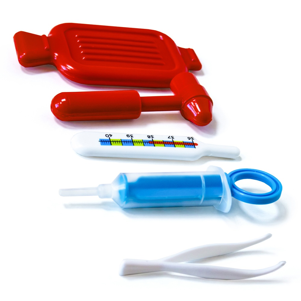 Jucăriile marca Knopa sunt fabricate din plastic de înaltă calitate, se disting prin funcționalitate, design modern, culori strălucitoare și siguranța pentru copii. Setul de medic „TERAPEUTIC” este un set fascinant de jocuri de rol cu dispozitive medicale, care va fi util atunci când copilul se va juca de-a spitalul cu păpușile sau animalele sale. În setul de joacă, copiii vor găsi un termometru, o pernă încălzitoare, tablete, capsule, o cană de măsurat, o seringă și 3 fiole, pensete. Acest set de joacă nu numai că îi va captiva pe copii, dar îi va învăța și responsabilitatea, atenția și grija și îl va învăța pe copil să nu se teamă de medici.