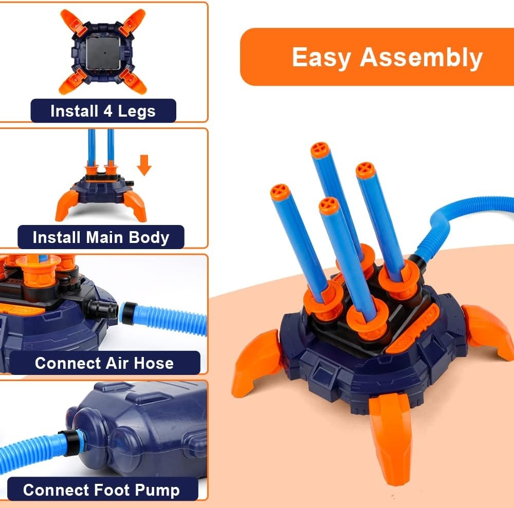 Beneficii pentru copii: Jocurile cu rachete aeriene ajută la dezvoltarea motricității, îmbunătățind agilitatea și coordonarea mișcărilor. Unghiul reglabil de lansare dezvoltă atenția și precizia, iar jocul în sine contribuie la dezvoltarea percepției spațiale. Această jucărie încurajează activitatea fizică, stimulează dezvoltarea fizică și îi învață pe copii să interacționeze cu mecanisme, dezvoltându-le abilitățile tehnice.