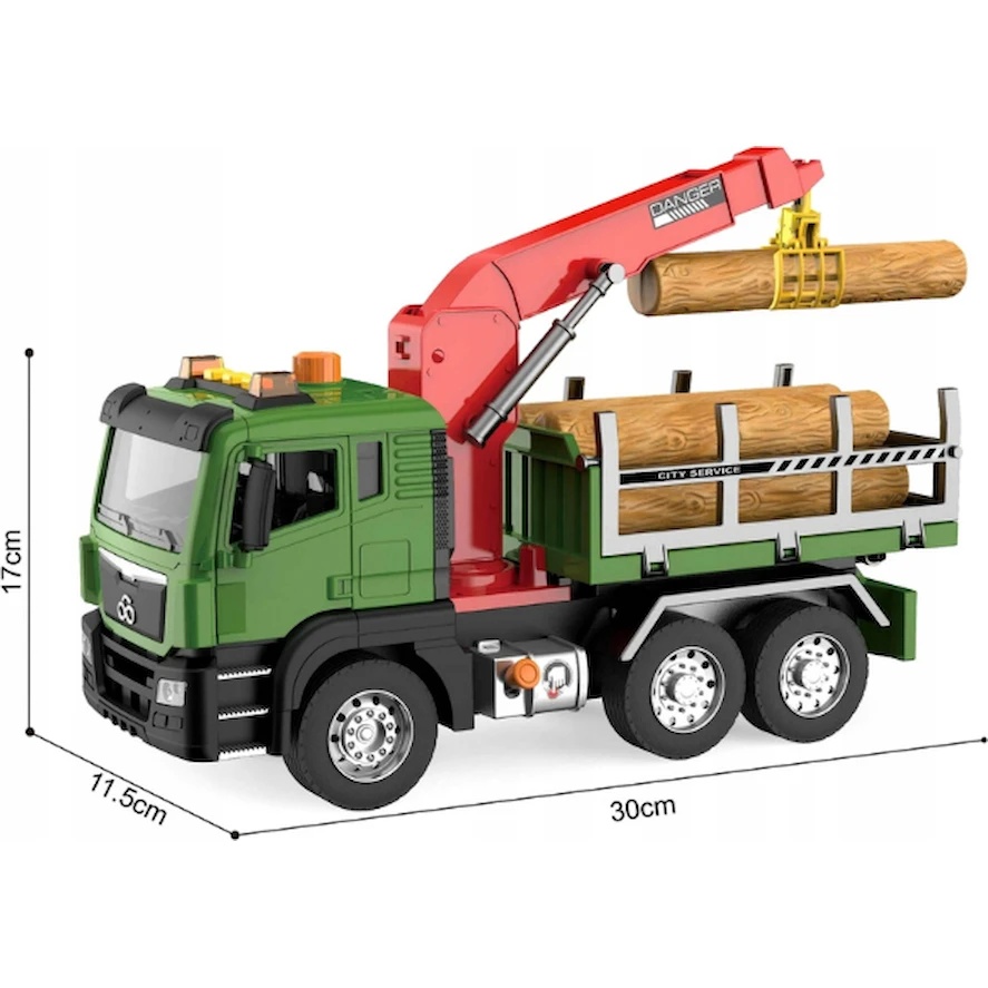 Camionul cu iluminare și sunet are următoarele caracteristici: emite sunete și luminează precum o mașină adevărată din domeniul serviciilor urbane. Efectele sonore se activează prin 4 butoane situate pe acoperișul cabinei. Roțile sunt realizate din cauciuc. Jucăria este fabricată din plastic de înaltă calitate.