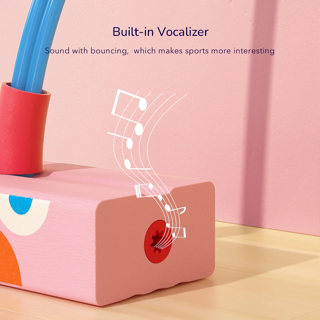 Design dublu anti-alunecare, sigur pentru a sari. Manerul din spuma care absoarbe transpiratia nu va aluneca. Pedala este ondulata pentru prevenirea caderilor. Echipat cu un scartait distractiv, sunet amuzant cu fiecare hop, stimuleaza interesul copilului pentru a se juca. Ilustratie atractiva si draguta, porc roz pe perna.