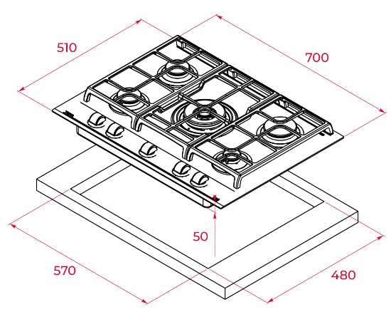 Dimensiuni plita (ÎxLxA)5x70x51 cm