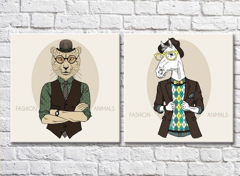 Pictură ArtPoster Horse with glasses and a tiger in a jacket (3447715)
