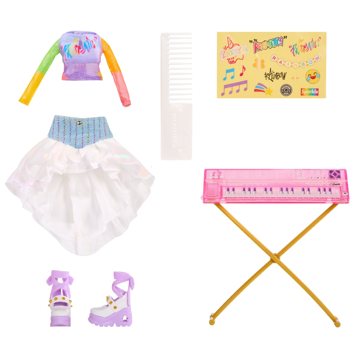 Descopera noua colectie RAINBOW HIGH Junior High Rockband, unde papusile preferate prind viata in versiuni mai tinere si devin o adevarata trupa rock! Papusa Amaya iese in evidenta prin parul lung multicolor si un stil unic, perfect pentru scena.