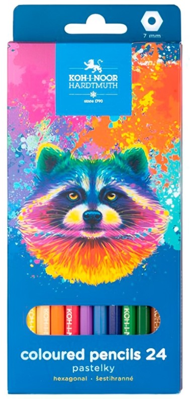 Un set de 24 creioane colorate KOH-I-NOOR Racoon cu mine rezistente și culori vibrante și saturate. Acestea oferă un desen precis și uniform, fiind ideale pentru școală, meșteșuguri și hobby-uri.