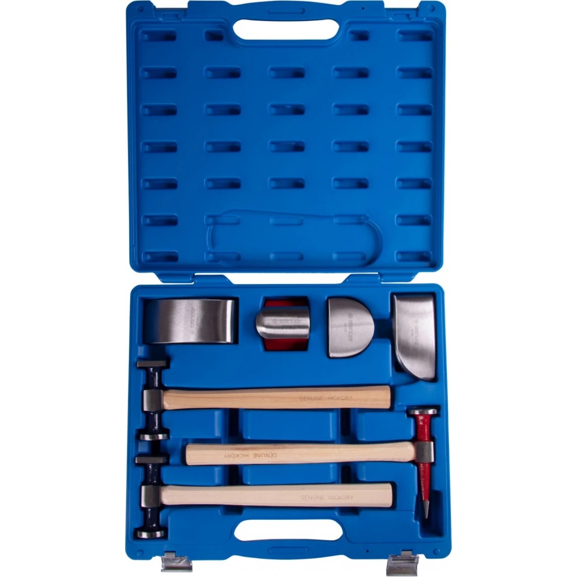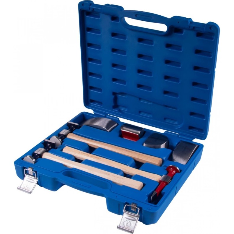 Set de ciocane de îndreptat și suporturi KING TONY 7 piese 9CF-307 este un set specializat de unelte și accesorii pentru efectuarea reparațiilor de caroserie a automobilelor. Permite să faci față cu ușurință și rapiditate denivelărilor de pe metal și să dai pieselor forma necesară. Poate fi utilizat în stațiile de service auto (SSM), în atelierele auto, în producție și în domeniul gospodăriei. Unealta este realizată din oțel de calitate și rezistent. Acest lucru asigură fiabilitate și durabilitate.