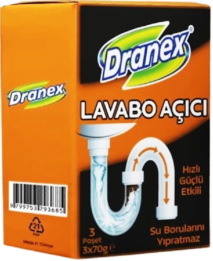 Detergent pentru obiecte sanitare Dranex Lavabo Acici 3x70 210g