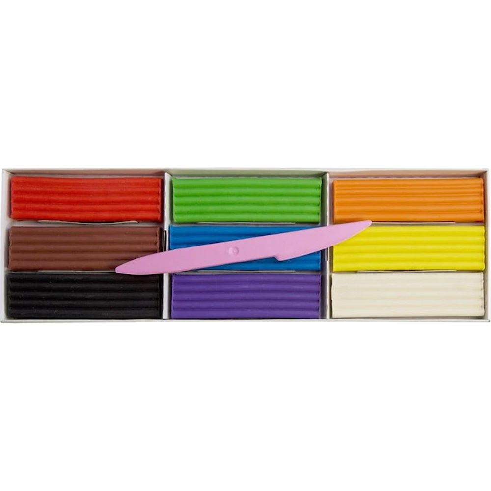 „Școala creativității” este realizat după o rețetă nouă. La fel ca plastilina clasică tradițională, are o plasticitate excelentă și proprietăți organoleptice foarte bune. 9 culori cu efect mat. Plastilina se îndepărtează ușor cu apă sau cu un șervețel umed de pe orice suprafață. Spatulă (unealtă de modelaj) inclusă.