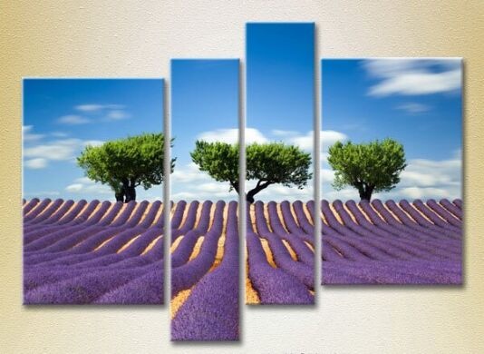 Pictură Rainbow Polyptych Three trees in a lavender field (2223684)