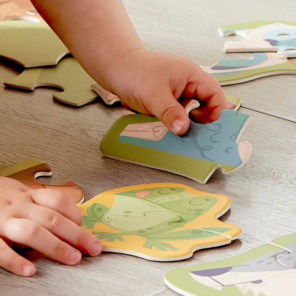 Puzzle-uri de dificultăți variate: începeți cu 2–3 piese și treceți la puzzle-uri mai complexe de 6 piese pentru a dezvolta gândirea logică și încrederea copilului.