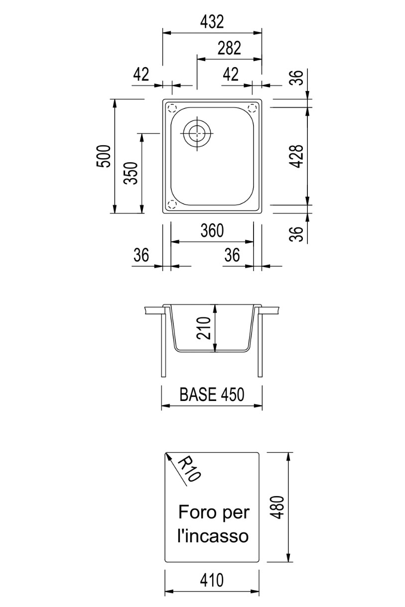 Adâncime cuvă210 mm
