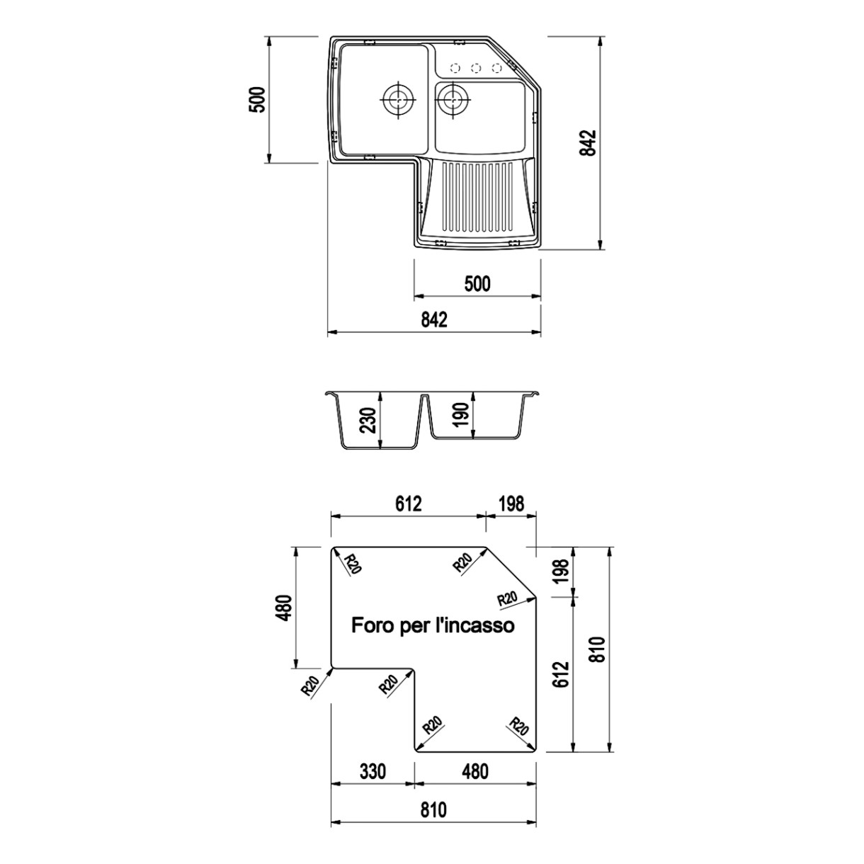 Adâncime cuvă230 mm