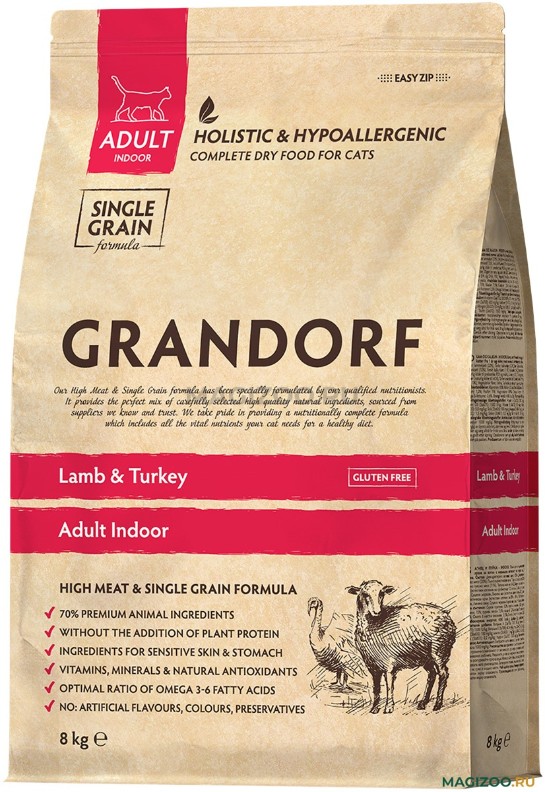 Hrană uscată pentru pisici Grandorf Adult Indoor Lamb&Turkey 8kg