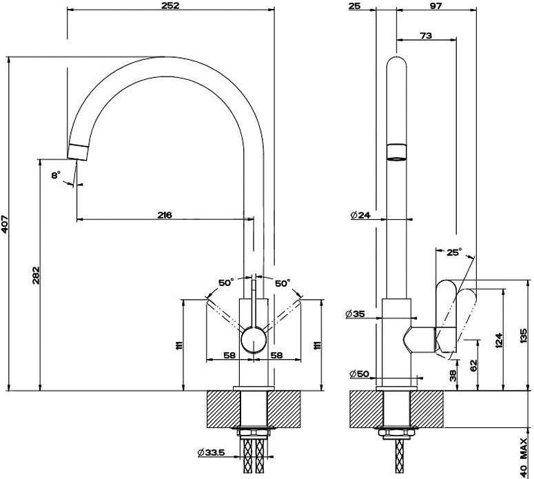 Înălțime pipă282 mm