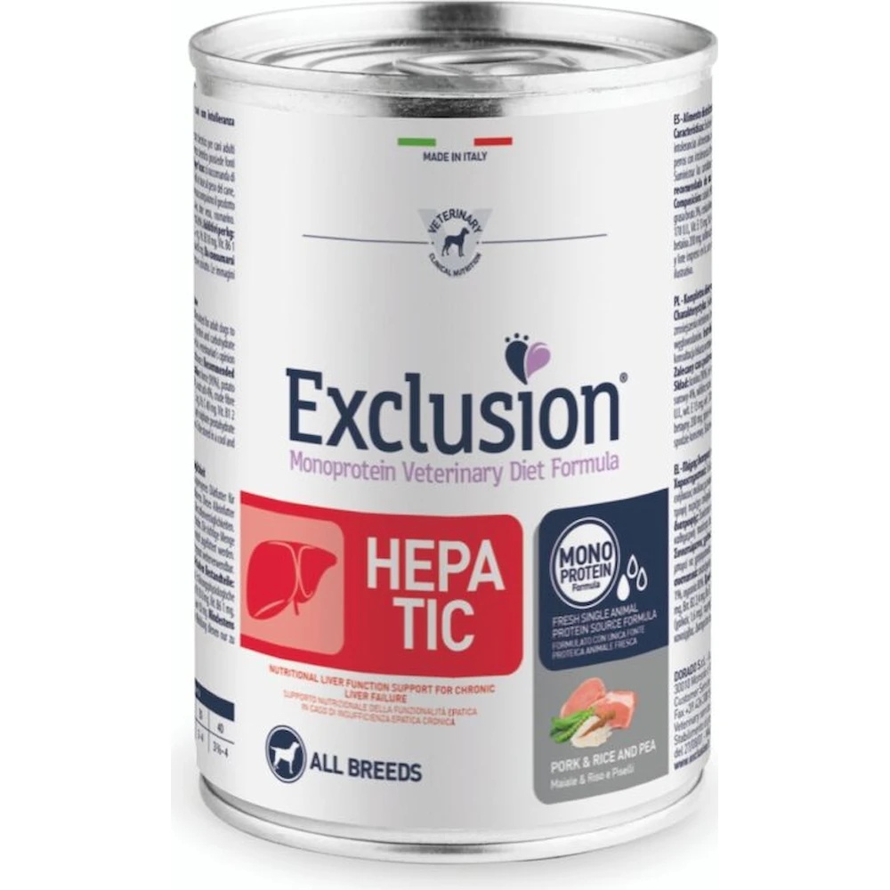 Hrană umedă pentru câini Exclusion Diet Hepatic Pork&Rice And Pea All Breeds 400g