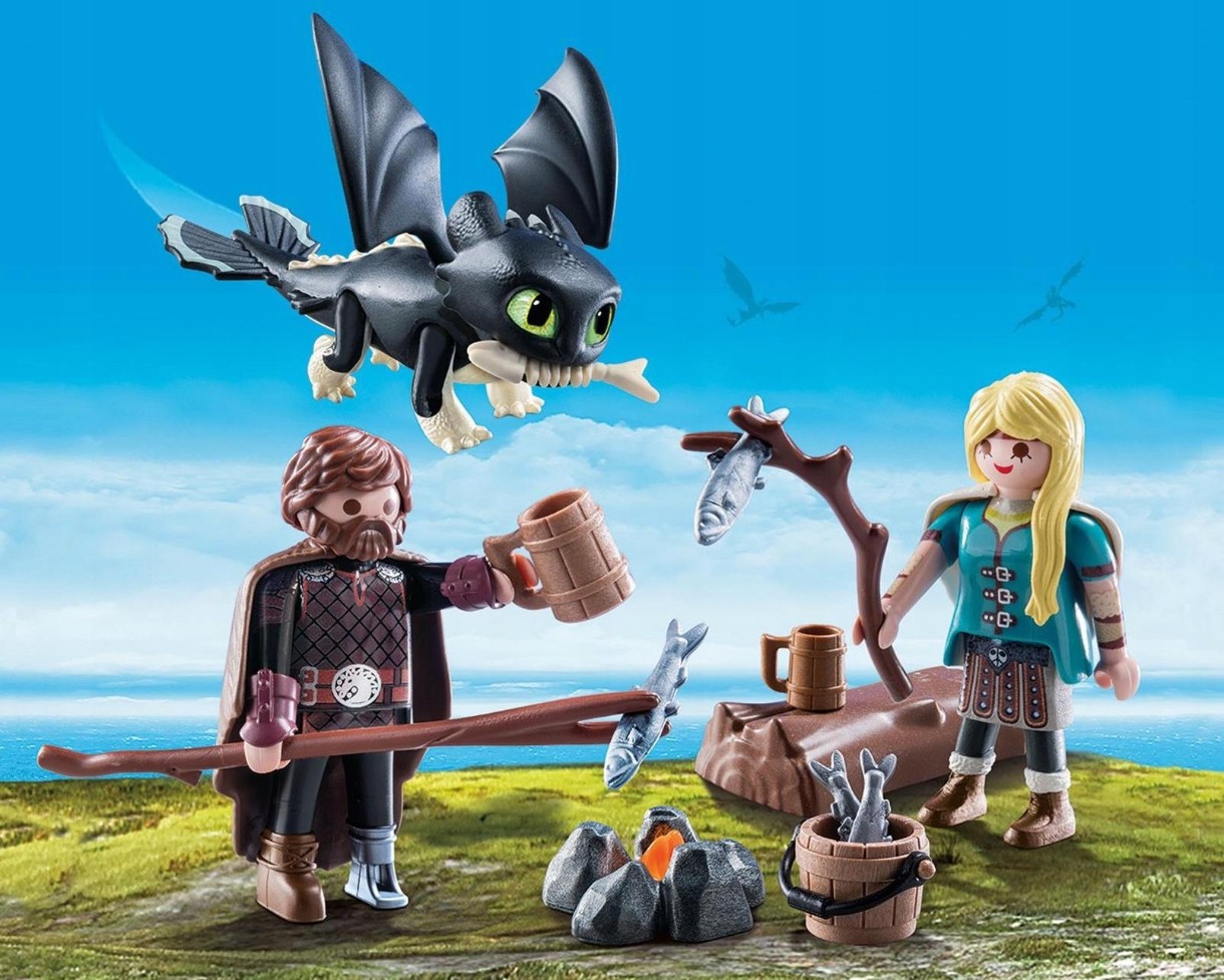 Figura Eroului Playmobil Dragons: Hiccup Astrid and Dragon (PM70040)