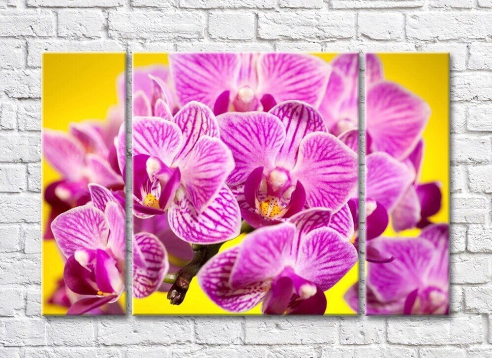 Pictură Rainbow Variegated purple orchid flowers on a yellow background (500520)