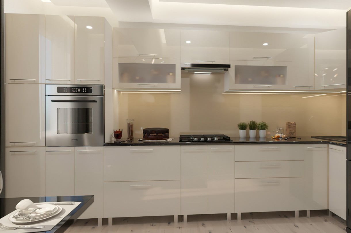 Bucătărie Bafimob Corner (High Gloss) 4.1x0.9m Eco +ball closer Beige