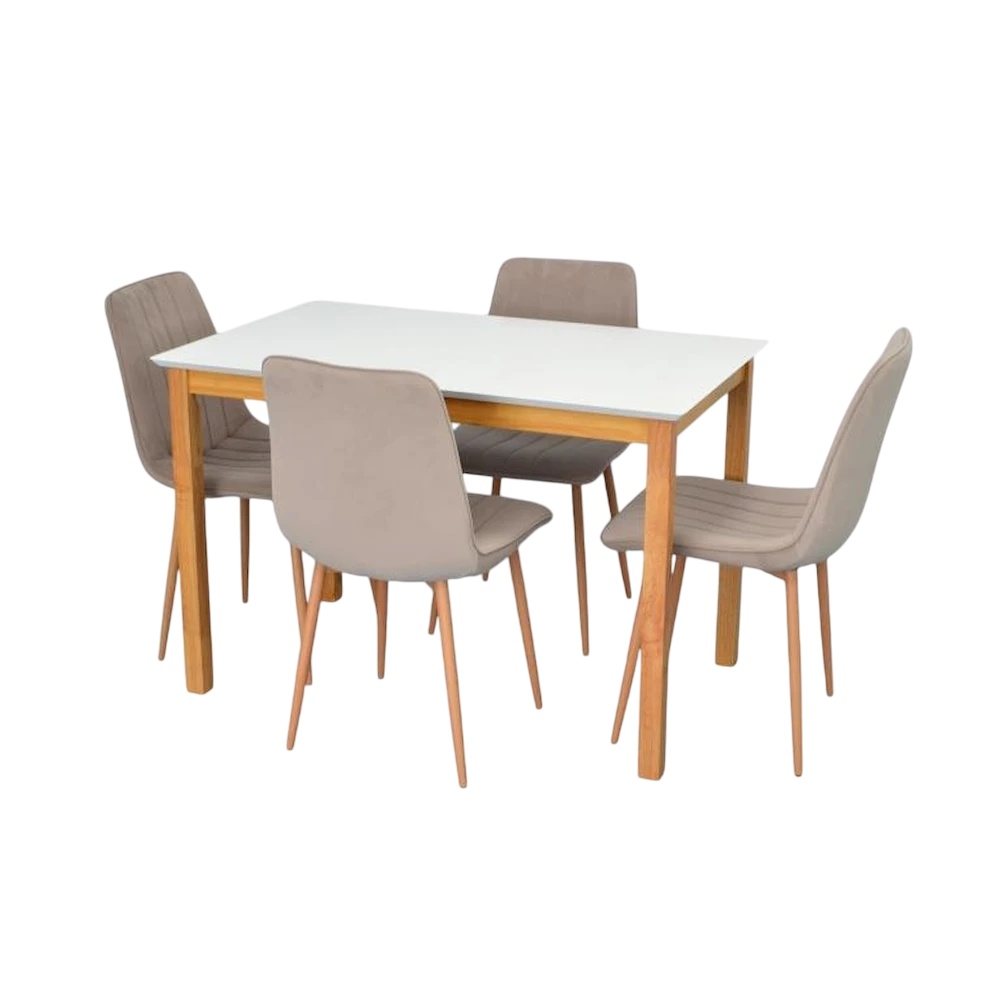 Set masă și scaune Evelin Gloria White/Bella Beech + 4 XR-154 WO Light Beige