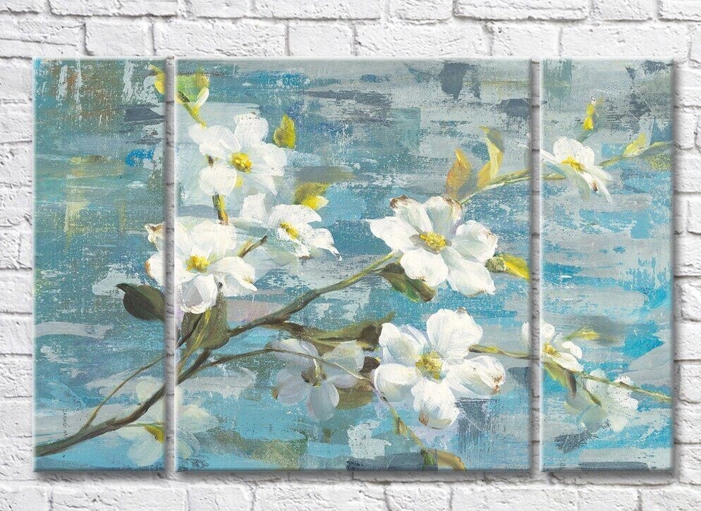 Pictură Magic Color White flowers on a Blue background (3572549)