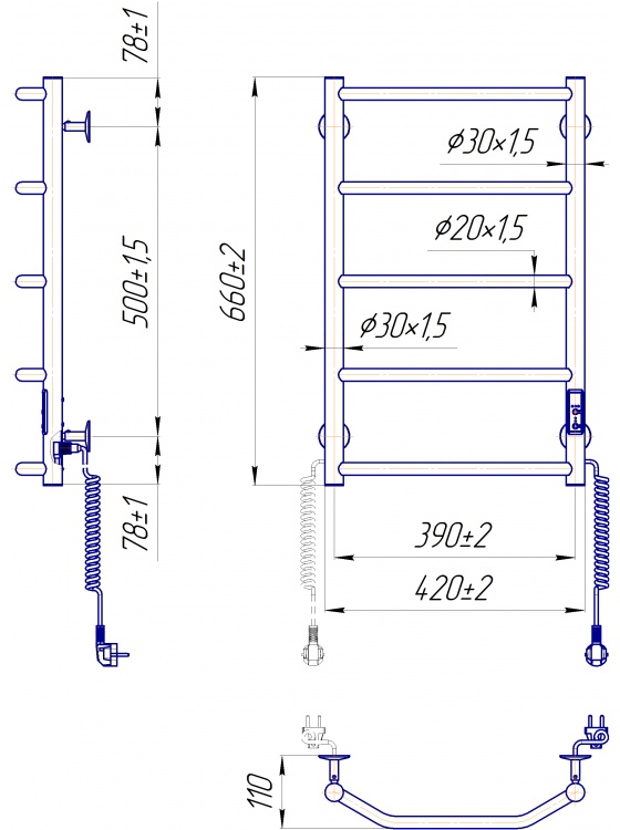 Uscător de prosoape Mario Trapeze HP-I 650x430/110 TR K