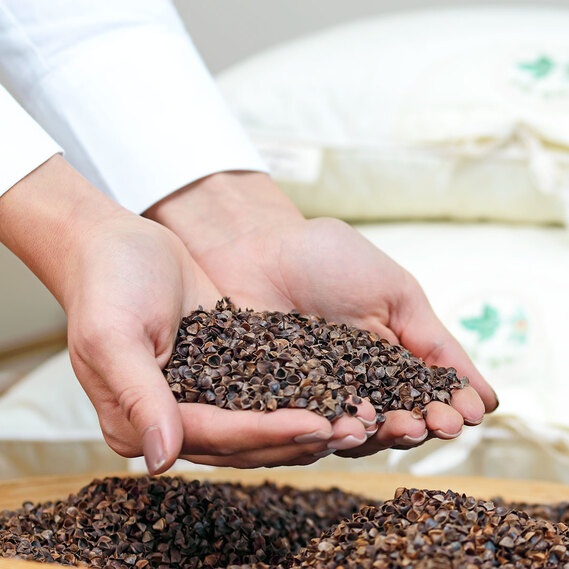 Perna Natural Aromavita din coaja de hrisca. Umplutura naturală și organică este higroscopică, bine ventilată și nu acumulează căldură.