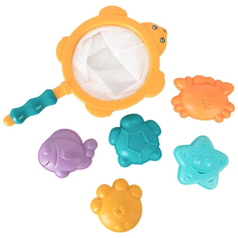 La plajă sau în timpul băii, bebelușul va adora să se joace cu plasă și jucăriile în formă de animale. În timpul băii, jucăriile plutesc pentru a-l amuza pe bebeluș și pentru a-i dezvolta motricitatea. La plajă, se poate distra folosindu-le în nisip. Dezvoltă răbdarea și concentrarea.