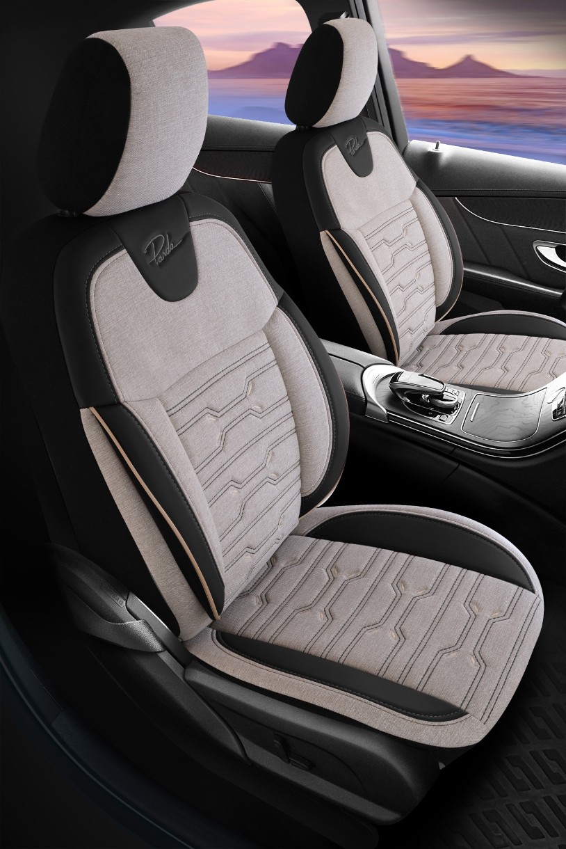 Husă Panda Seria Venus, husă ortopedică pentru scaun auto, material jacquard britanic, cu spate din piele.
