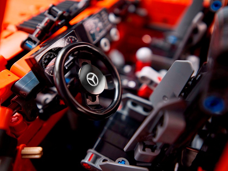 • Construiește Clasa G: Bucură-te de o experiență de construcție atentă cu toate detaliile acestui model LEGO® Technic, cum ar fi direcția funcțională și suspensia ridicată. • Explorează caracteristicile autentice: Vezi motorul cu 6 cilindri în linie cu piston, transmisia cu dublu ambreiaj, neutrul și marșarierul, precum și blocarea diferențială dublă.