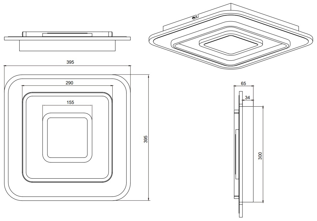 Corp de iluminat LED cu telecomandă Trio Jora Square (R64293131)