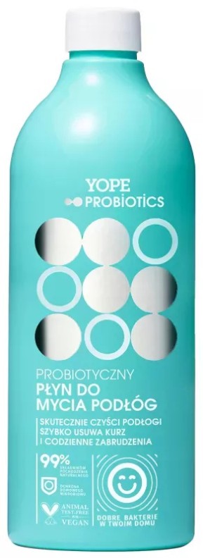 Produsul probiotic lichid Yope Probiotics pentru curățarea podelelor- curăță eficient diferite suprafețe, inclusiv gresie, ceramică și parchet. Soluția îndepărtează murdăria și mirosurile neplăcute, conferă strălucire și prospețime, menținând flora benefică pe suprafața podelei datorită probioticelor. Formula este 99 % din ingrediente naturale, hipoalergenică și sigură pentru întreaga familie. Produsul este gata de utilizare, nu necesită diluare.