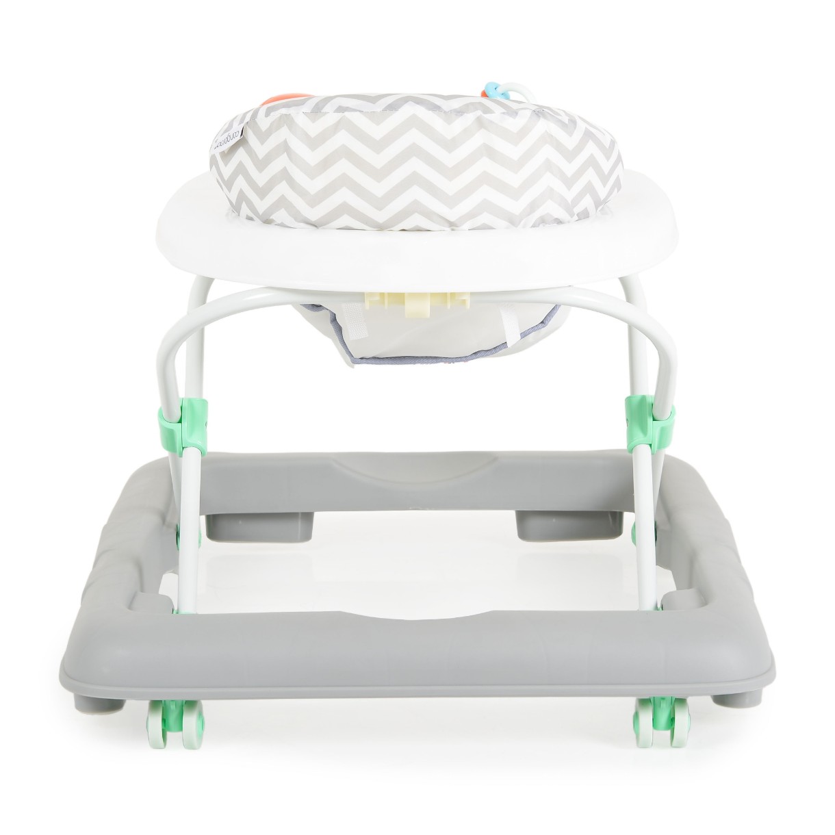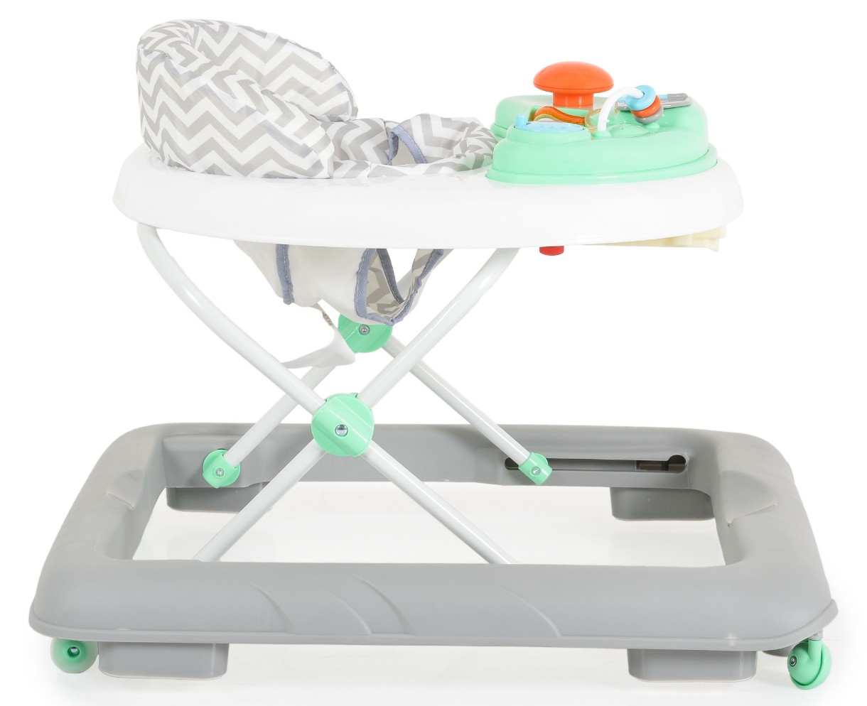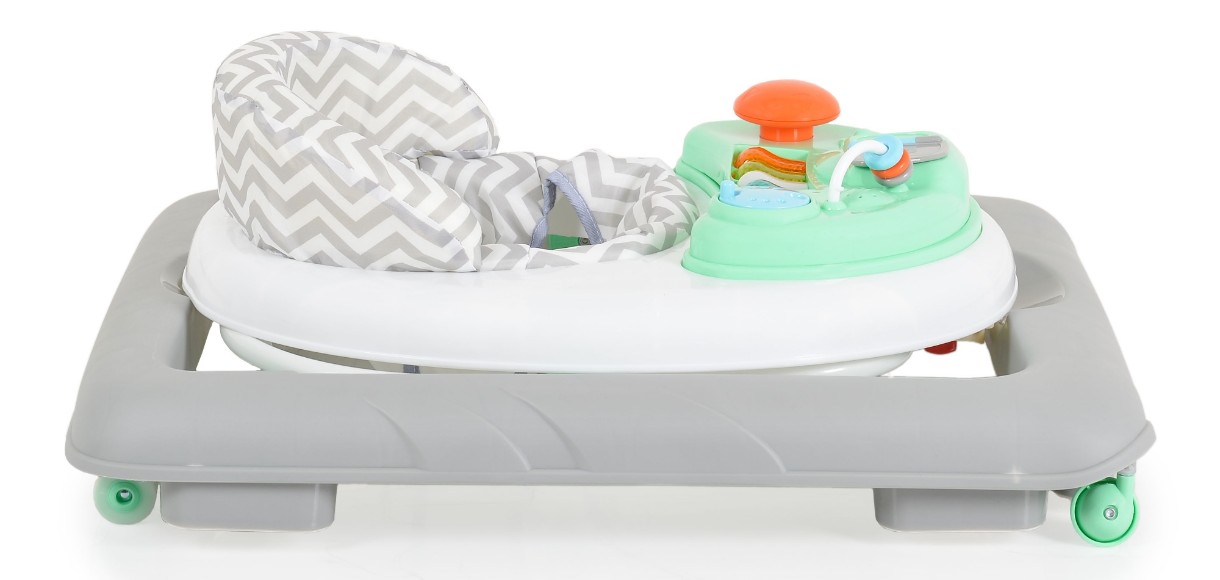 Pentru copii peste 6 luni. 3 niveluri de reglare a înălțimii în funcție de înălțimea copilului. Șezu moale. 2 roți față pivotante. 2 roți spate. Opritoare din silicon.