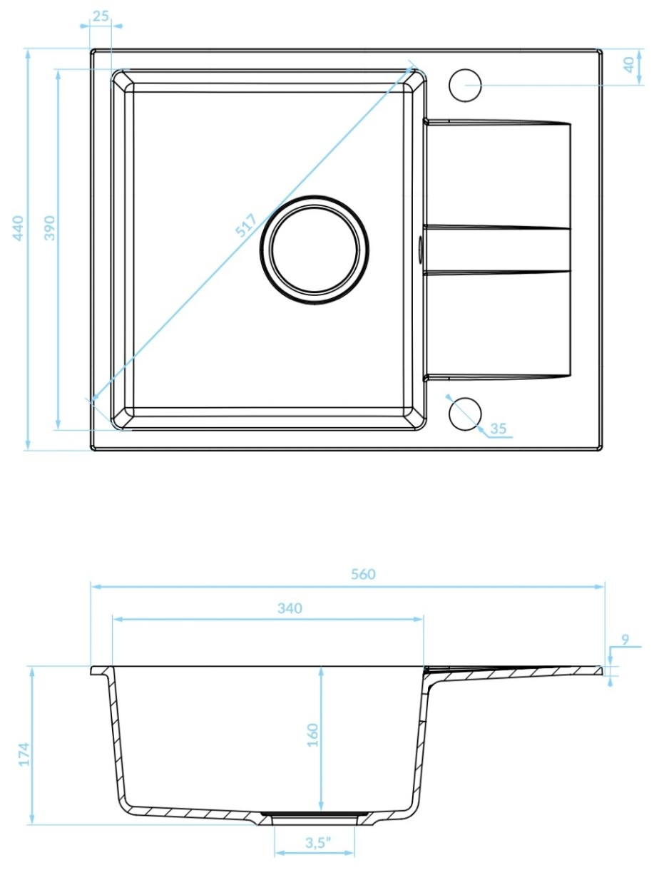 Chiuvetă de bucătărie Backer Nona Solo 56x44 Grey