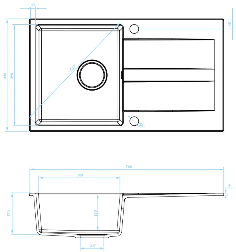 Chiuvetă de bucătărie Backer Nona Wing 76x44 Grey