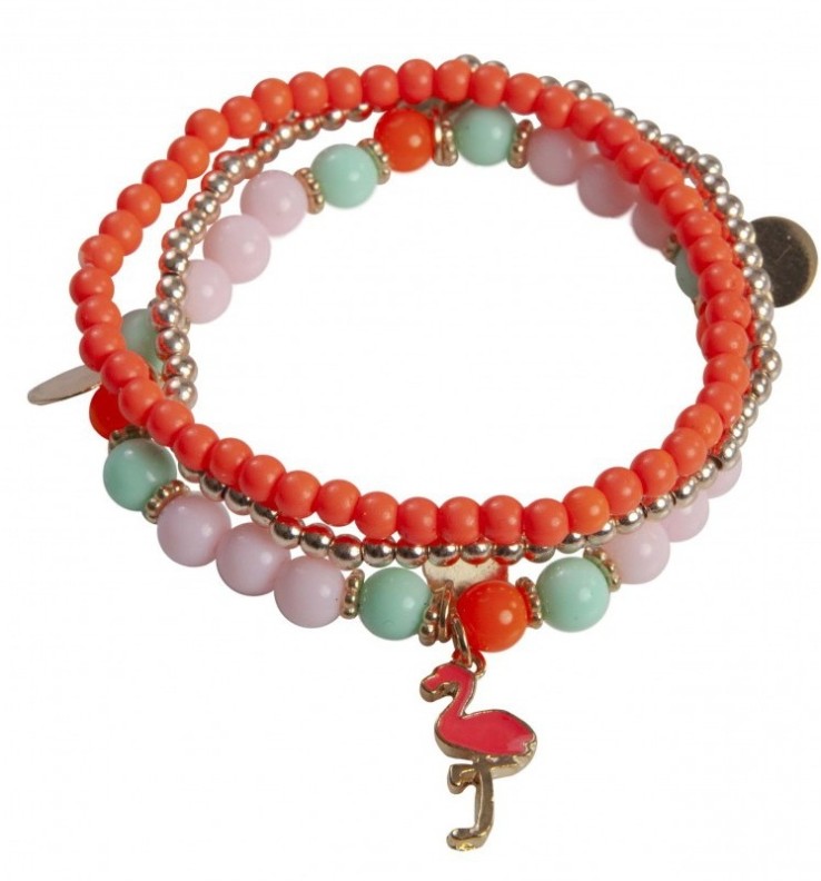 Setul de la Great Pretenders este format din trei bratari elegante. Fiecare dintre ele are propria sa aroma. Bratarile gri si rosu sunt potrivite pentru o tinuta de culoarea corespunzatoare sau in combinatie cu o nuanta armonioasa de imbracaminte. Iar a treia bratara este realizata din margele roz si albastru deschis. In mijloc este o figurina flamingo. Un astfel de cadou va ocupa un loc special in colectia de bijuterii a micutei fashioniste.